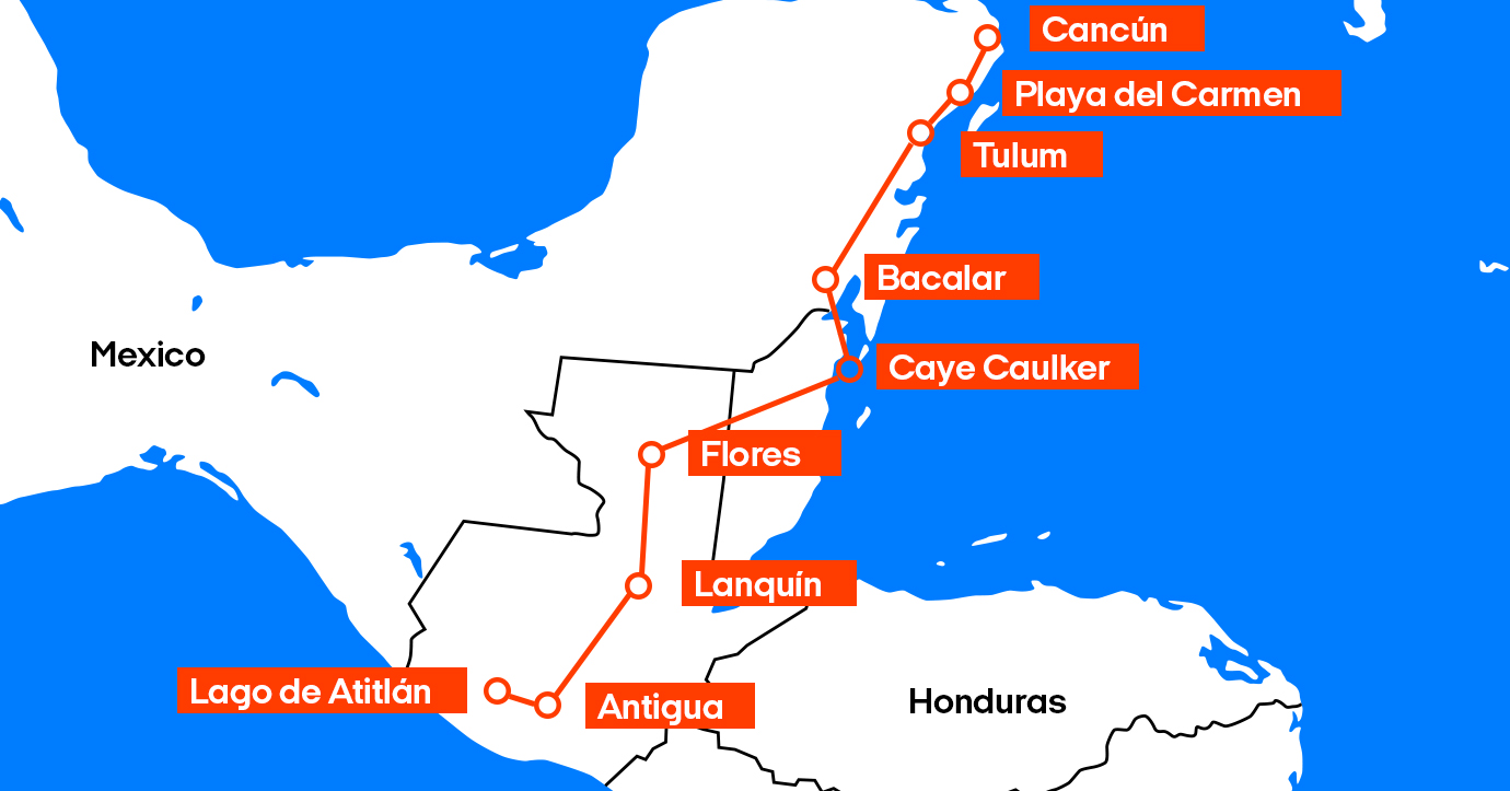¡Caramba! Zin in een avontuurlijke reis bomvol mooie stranden, indrukwekkende vulkanen en oude Maya tempels? Dan is deze backpackroute in Centraal-Amerika door Mexico, Guatemala en Belize ècht iets voor jou. Deze drie landen kun je in zo’n 2 à 3 weken combineren: perfect voor een (zomer)vakantie dus. De hagelwitte stranden van Mexico en de groene jungle van Guatemala zijn maar een paar plekken waarmee je camera vol zal staan. Trek een zak nacho’s open, zet de salsamuziek maar aan en schenk een glaasje tequila in: ¡Vamos! Dit zijn onze tips voor de perfecte backpackroute door Mexico, Guatemala en Belize!