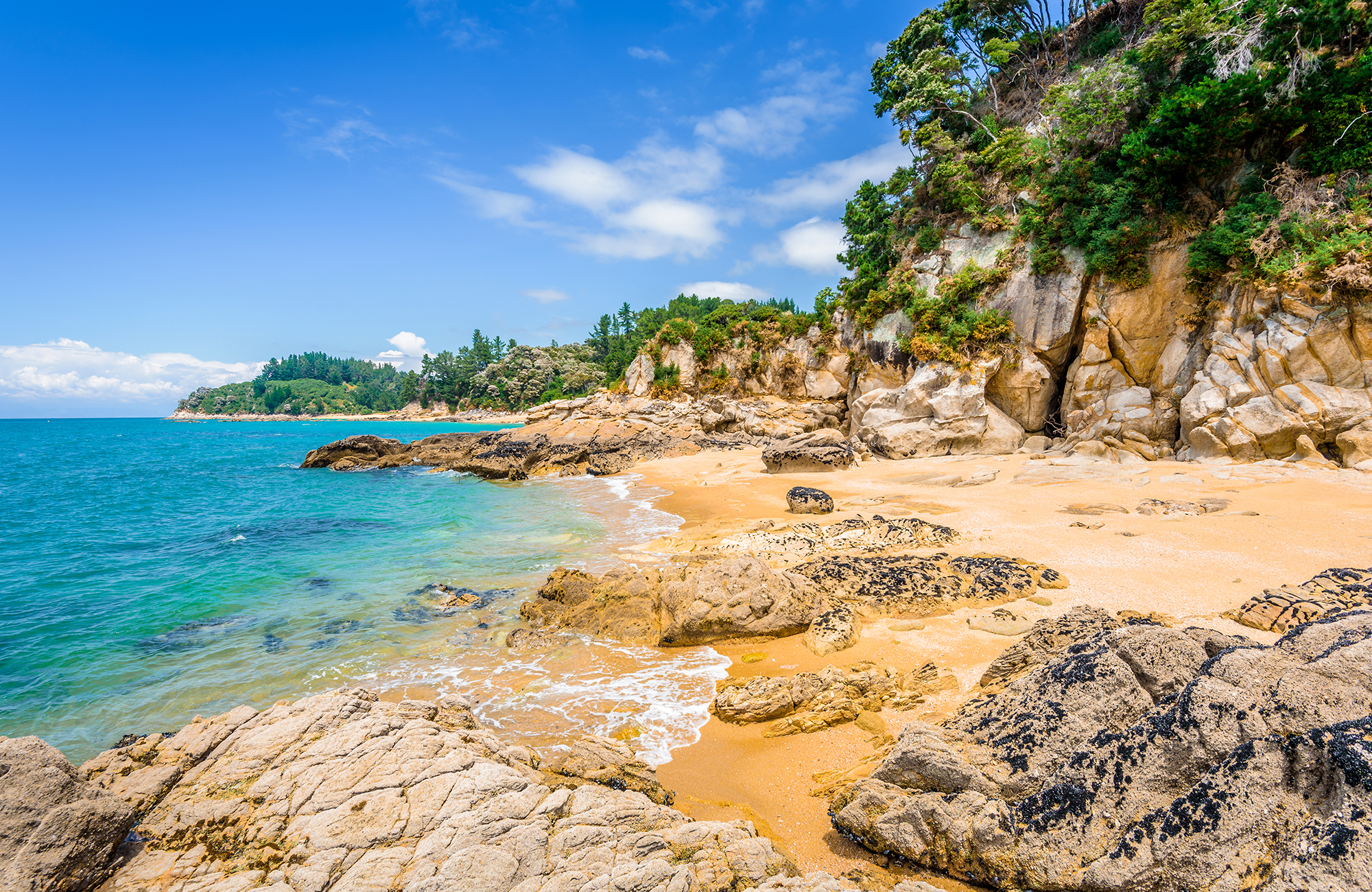 Als je met de boot van het Noordereiland komt, kom je aan in de haven van Picton. Vanaf hier reis je door naar Nelson in het Oosten. Dit is de toegangspoort tot het Abel Tasman National Park. De hele kustlijn rondom het park bestaat uit zo’n 60 kilometer aan wandelroutes van een paar uur tot meerdere dagen. Te voet kun je de prachtige stranden rondom dit groene park goed ontdekken. De lokale watertaxi’s kunnen je van en naar de tracks brengen. Een andere manier om het Abel Tasman National Park te beleven is door te gaan zeilen of kajakken. Met een beetje geluk komt er nog een nieuwsgierige zeehond naast je boot zwemmen.