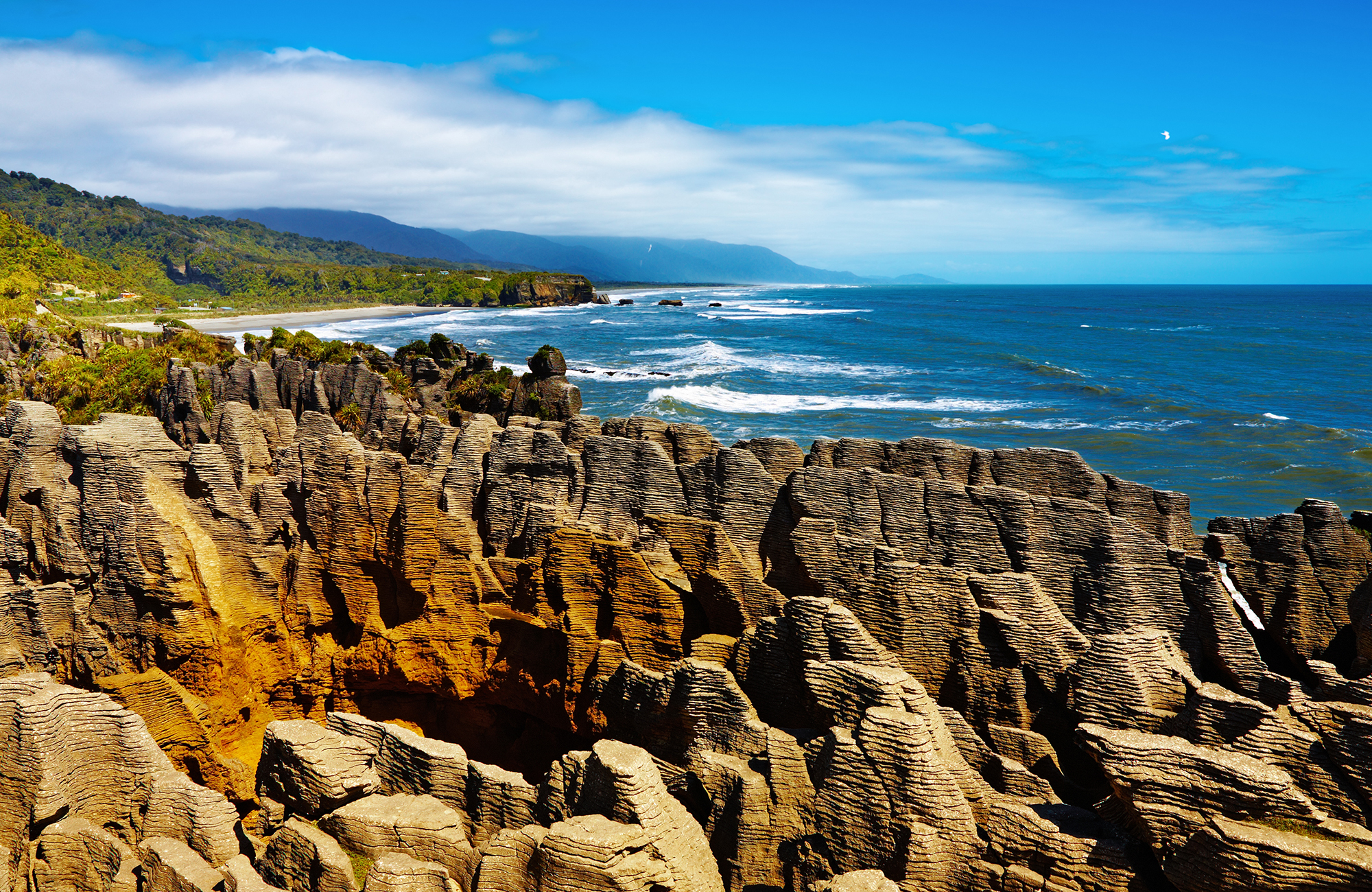 Bewonder bijvoorbeeld de bijzondere pannenkoekrotsen bij Punakaiki. Helemaal lekker: Je kunt de korte wandeling langs dit fenomeen bezegelen met een stapel verse pannenkoeken van het caféetje aan de overkant van de straat.