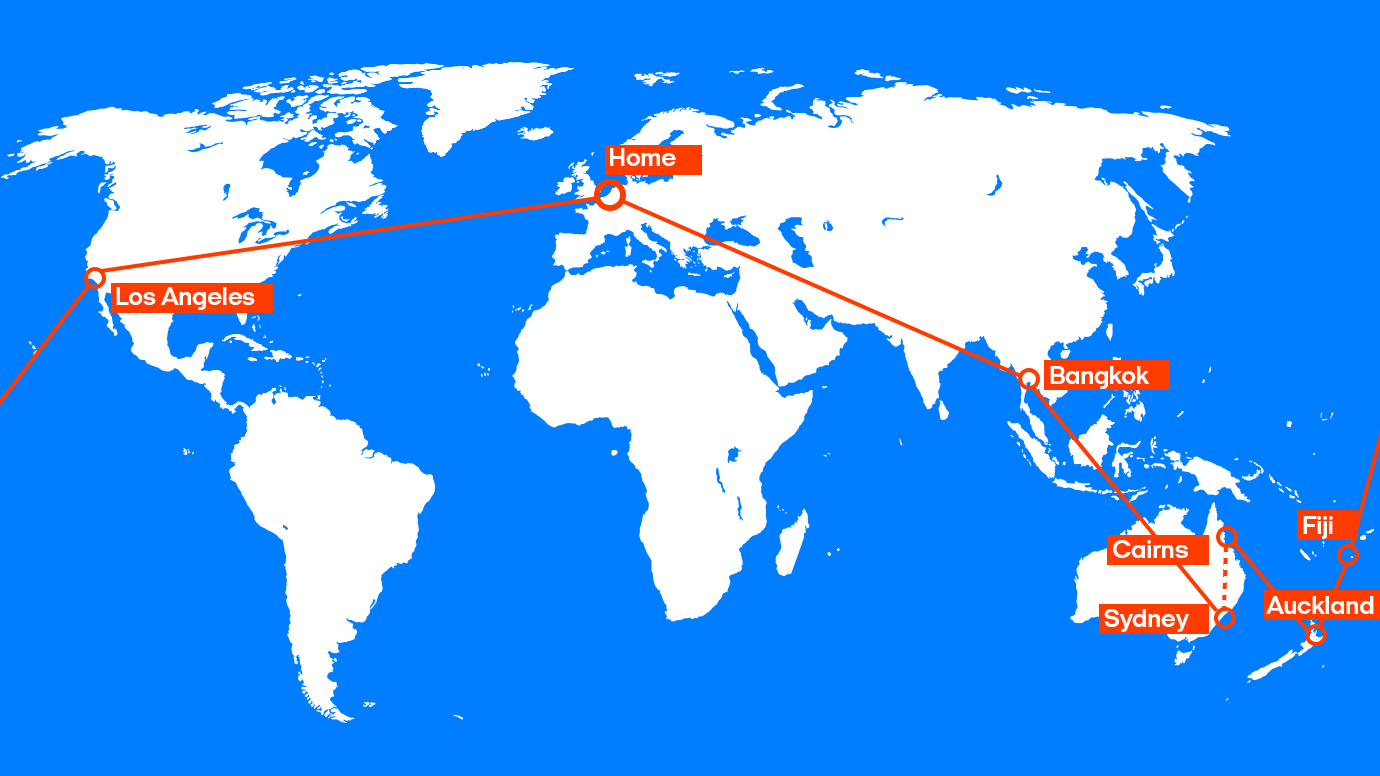 ✈️ Amsterdam - Bangkok - Sydney // Cairns - Auckland - Fiji - Los Angeles - Amsterdam