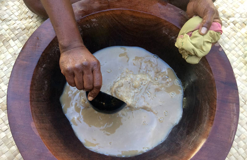 We wisten niet precies wat we van een kava-ceremonie verwachtten, maar dit was anders dan we dachten. Terwijl we met gekruiste benen zitten bij de dorpsoudsten, drinken we kava, een licht kalmerend drankje gemaakt van de wortels van de yaqona-plant, geserveerd in kokosnoten. De ceremonie is een belangrijke traditie in Fiji, met het klap-drink-klap ritueel en het verhalen vertellen achteraf. Het maakt deel uit van de meeste dorpsrondleidingen in Fiji en, hoewel het een smaak is die je moet leren waarderen, raden we het aan. Het is een van de beste manieren om in contact te komen met de Fijianen. Wie weet delen ze verhalen over hun voorouders en vertellen ze je meer over het dagelijks leven op de eilanden.