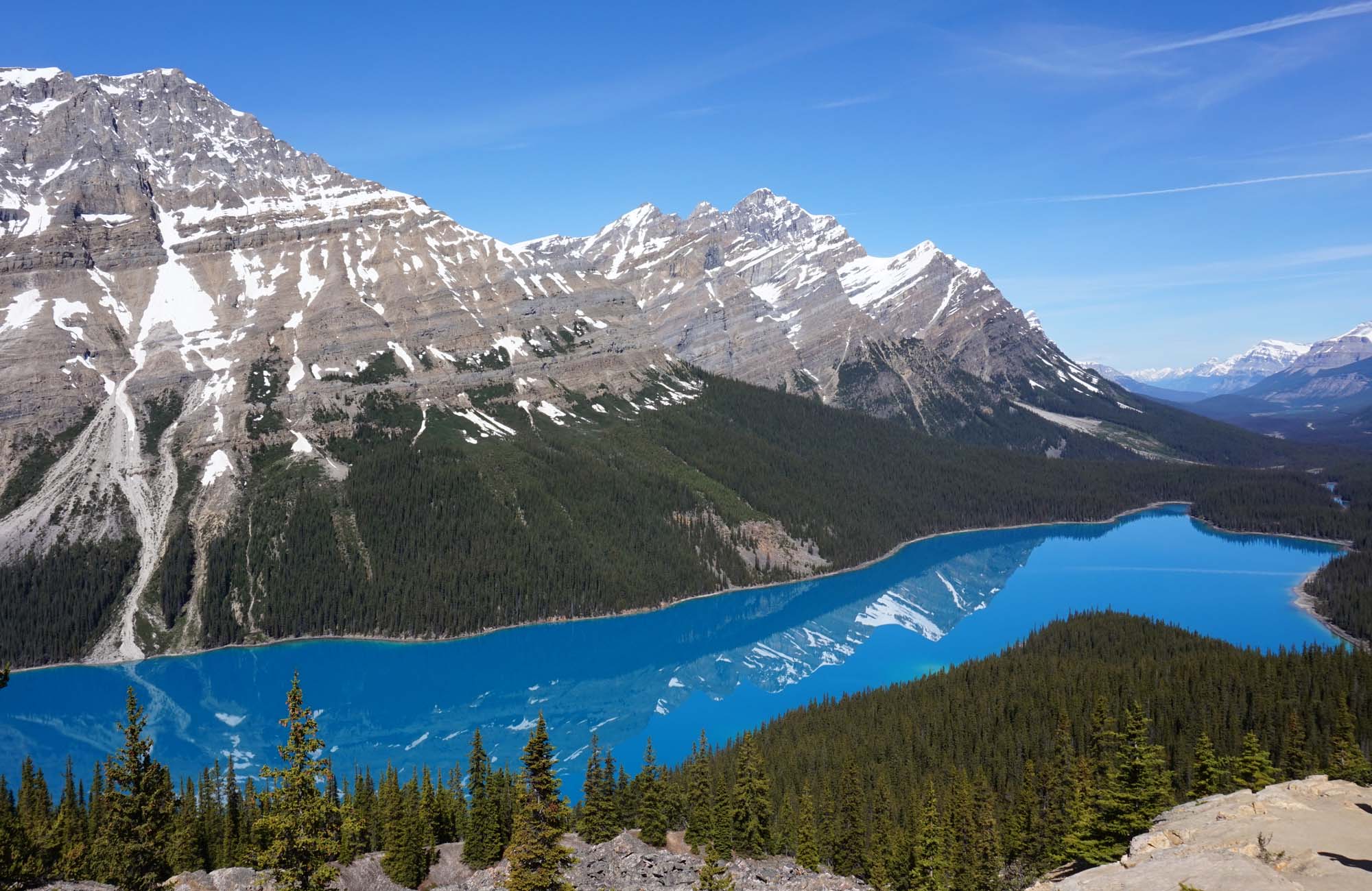 Nadat ze de camper hadden opgehaald bij het depot in Vancouver begon de roadtrip via de Okanagan vallei richting de Rocky Mountains. “Dit is een erg droge wijnregio en dat had niet echt onze interesse. We maakten hier een korte stop om de lange reis op te breken,” vertelt Michel. Na Revelstoke kom je in Yoho National Park en dat is het eerste moment dat je de hoge pieken van de Rockies ziet. “Dat was echt prachtig!” zegt Michel enthousiast. “We maakten hier meteen een hike van een paar uur om de omgeving verder te verkennen. Dat was niet geheel zonder gevaar. “Er was ons al verteld over de beren in de omgeving. Die zijn in juni net ontwaakt uit hun winterslaap en omdat hier bijna geen andere toeristen waren, voelde het als een behoorlijk spannend avontuur.” Tijdens deze hike kwamen ze echter alleen maar oog-in-oog te staan met geweldige uitzichten. “We waren constant omringd door mooie bergen!”