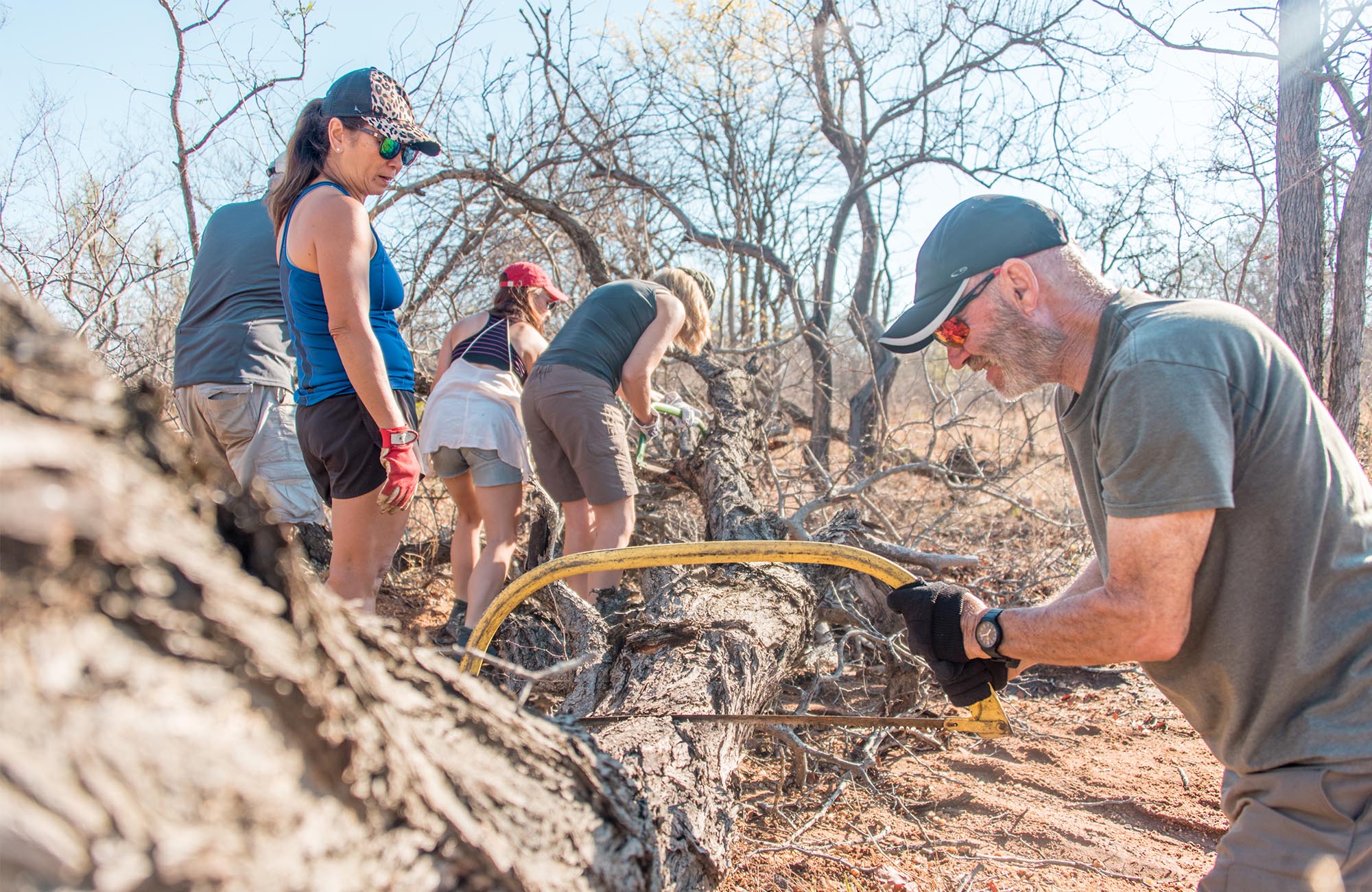 Omdat jij en de andere vrijwilligers nooit de enige in het Krugerpark zijn, voer je ook andere taken uit die ervoor zorgen dat andere bezoekers zo weinig mogelijk hinder ondervinden. Zo duwen olifanten graag bomen op de weg. Als deze niet zo snel mogelijk worden opgeruimd, kan niemand meer door het park rijden. Tijd om je handen uit de mouwen te steken!